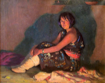 Joseph Henry Sharp, Leaf Down, Oil, 16″ x 20″